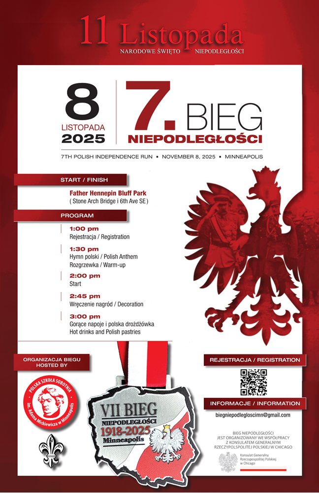 Bieg Niepodległości to okazja do uczczenia na sportowo 107-tej rocznicy odzyskania przez Polskę niepodległości. To nie tylko wydarzenie sportowe, ale też szansa na prezentację Polonii w Minneapolis i podzielenie się naszą radością z tego, że mamy wolną Polskę – nawet jeśli mieszkamy poza jej granicami.